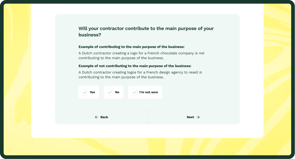 Based on the employee’s location, involvement, type of work, responsibilities, and qualifications, the app calculates the level of risk of hiring the person and guides how to proceed with it.